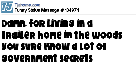 X Damn, for living in a trailer home in the woods you sure know a lot of government secrets