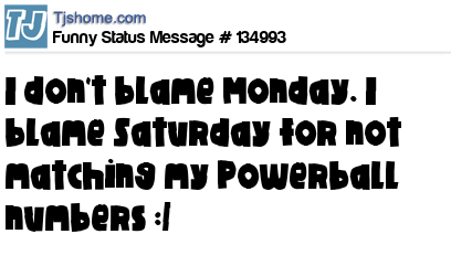 X says I don't blame Monday. I blame Saturday for not matching my Powerball numbers :/