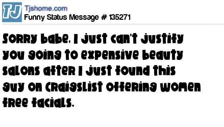 X says Sorry babe, I just can't justify you going to expensive beauty salons after I just found this guy on Craigslist offering women free facials.