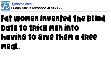 X says Fat women invented the Blind Date to trick men into having to give them a free meal.