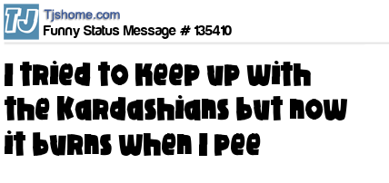 - # 124559 She tried keeping up with the Kardashians, but now it burns when she pees.