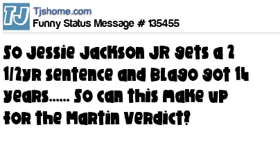 X says so Jessie Jackson JR gets a 2 1/2yr sentence and Blago got 14 years...... So can this make up for the Martin Verdict?
