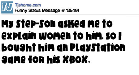 X  My Step-Son asked me to explain women to him, so I bought him an PlayStation game for his XBOX.