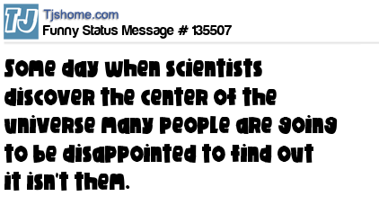 - # 208756 Someday when scientists discover the center of the universe, a lot of people are going to be disappointed to find out it isn't them.