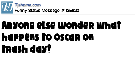 X says Anyone else wonder what happens to Oscar on trash day?