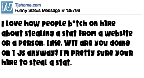 X says I love how people b*tch on h3re about stealing a stat from a webs!te or a person. Like, WTF are you doing on T Js anyway? I'm pretty sure your h3re to steal a stat.