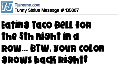 X Eating Taco Bell for the 5th night in a row... BTW, your colon grows back right?