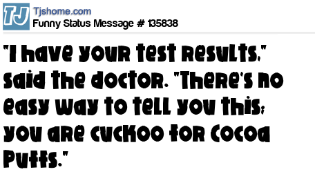 X says "I have your test results," said the doctor. "There's no easy way to tell you this; you are cuckoo for Cocoa Puffs."