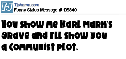 - # 142980 You show me Karl Marx's grave and I'll show you a Communist plot.