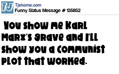 - # 142980 You show me Karl Marx's grave and I'll show you a Communist plot.