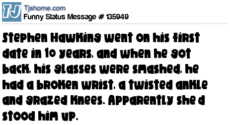 - # 6190 Stephen Hawking had a hot date last night. She stood him up... And he immediately fell on the floor.