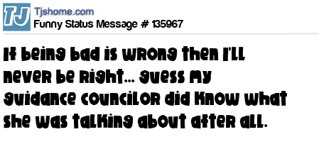 X says If being bad is wrong then I'll never be right... guess my guidance councilor did know what she was talking about after all.