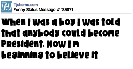 X says When I was a boy I was told that anybody could become President. Now I’m beginning to believe it