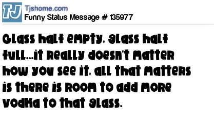 - # 34166 has just realized it doesnt matter if the glass is half empty or half full...either way it just means there is still room for more vodka!