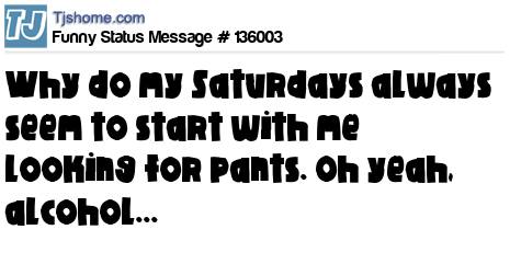 X says Why do my Saturdays always seem to start with me looking for pants. Oh yeah, alcohol...