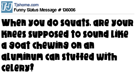 X When you do squats, are your knees supposed to sound like a goat chewing on an aluminum can stuffed with celery?