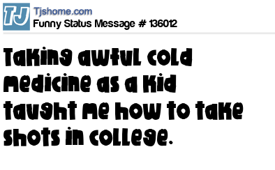 X says Taking awful cold medicine as a kid taught me how to take shots in college.