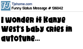 - # 165071 Kanye West should give his baby son back to hospital because he hasn't learned to say "Kanye" yet.
