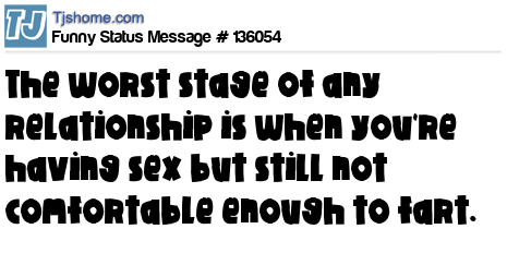 X says The worst stage of any relationship is when you're having sex but still not comfortable enough to fart.