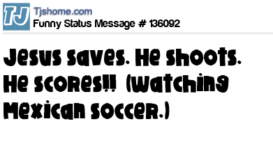 X says Jesus saves. He shoots. He scores!!  (watching Mexican soccer.)