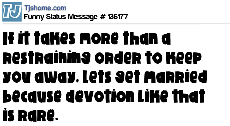X says If it takes more than a restraining order to keep you away, lets get married because devotion like that is rare.