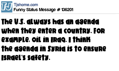 X says The U.S. always has an agenda when they enter a country. For example, oil in Iraq. I think the agenda in Syria is to ensure Israel's safety.