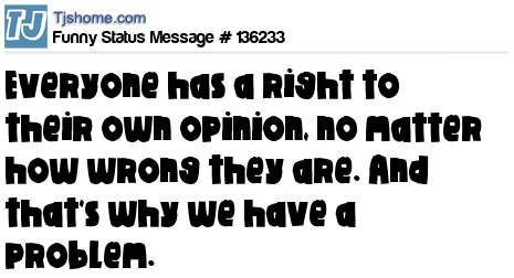 - # 42199 everybody is entitled to their opinion no matter how wrong they may be.