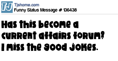 X says Has this become a current affairs f0rum? I miss the good jokes.