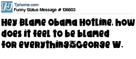 X says Hey Blame Obama Hotline, how does it feel to be blamed for everything~George W.