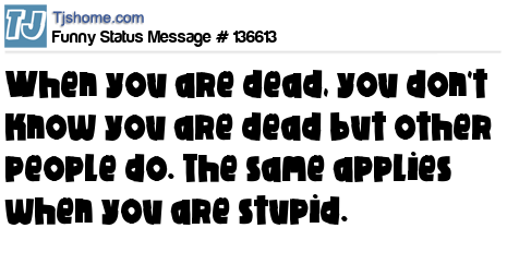 - # 153886 When you are dead, you don't know you are dead but other people do. The same is true when you are stupid.