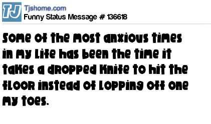 X says Some of the most anxious times in my life has been the time it takes a dropped knife to hit the floor instead of lopping off one my toes.