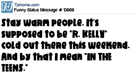 - # 34956 Stay warm people. It's "R. Kelly" cool out thereā¦and by that I mean "in the teens."