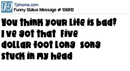 X says You think your life is bad? I’ve got that “Five dollar foot long” song stuck in my head