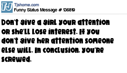 X says Don't give a girl your attention or she'll lose interest. If you don't give her attention someone else will. In conclusion, you're screwed.