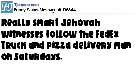 X says Really smart Jehovah witnesses follow the FedEx Truck and pizza delivery man on Saturdays.