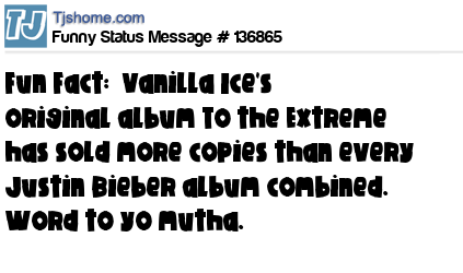 X says Fun Fact: Vanilla Ice's original album To the Extreme has sold more copies than every Justin Bieber album combined. Word to yo mutha.