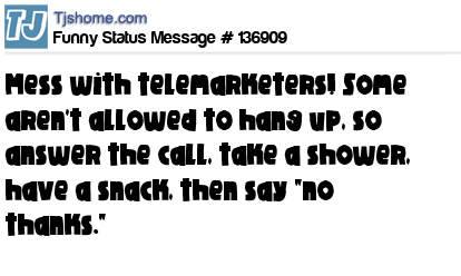 - # 166199 If you answer the phone and say "Hello, you're on the air." most telemarketers will hang up quickly.