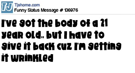 X I've got the body of a 21 year old,, but I have to give it back cuz I'm getting it wrinkled