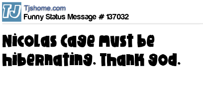 - # 108594 Just took a sh!t in an envelope and sent it to Nicolas Cage. I think it'll be his best script yet.