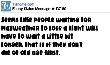 X says Seems like people waiting for Mayweather to lose a fight will have to wait a little bit longer, that is if they don't die of old age first.