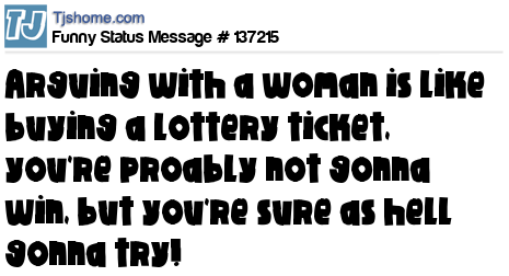 X says Arguing with a woman is like buying a lottery ticket, you're proably not gonna win, but you're sure as hell gonna try!