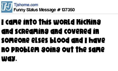 X says I came into this world kicking and screaming and covered in someone elses blood and I have no problem going out the same way.