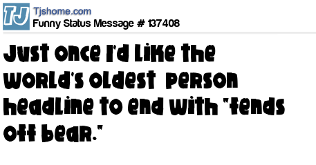 X says Just once I'd like the world's oldest person headline to end with "fends off bear."