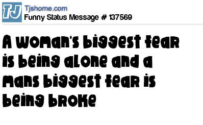 X says A woman's biggest fear is being alone and a mans biggest fear is being broke