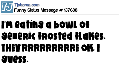 - # 182877 Just had a bowl of generic Frosted Flakes. They’re grrrrrrrr.......okay I guess.