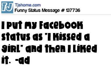 X says I put my Facebook status as "I kissed a girl" and then I liked it. -ad