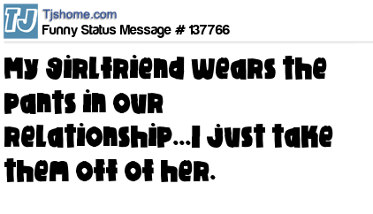 X says My girlfriend wears the pants in our relationship...I just take them off of her.