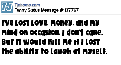 X says I've lost love, money, and my mind on occasion, I don't care. But It would kill me if I lost the ability to laugh at myself.