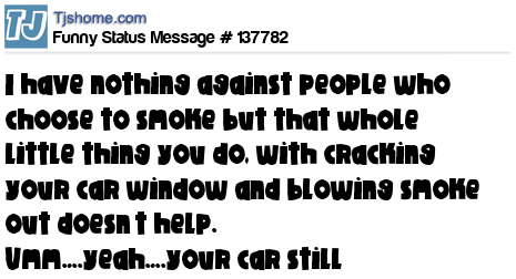 X I have nothing against people who choose to smoke but that whole little thing you do, with cracking your car window and blowing smoke out doesn’t help. Umm….yeah….your car still stinks.