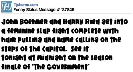 X says John Boehner and Harry Ried get into a feminine slap fight complete with hair pulling and name calling on the steps of the Capitol. See it tonight at midnight on the season finale of "The Government"
